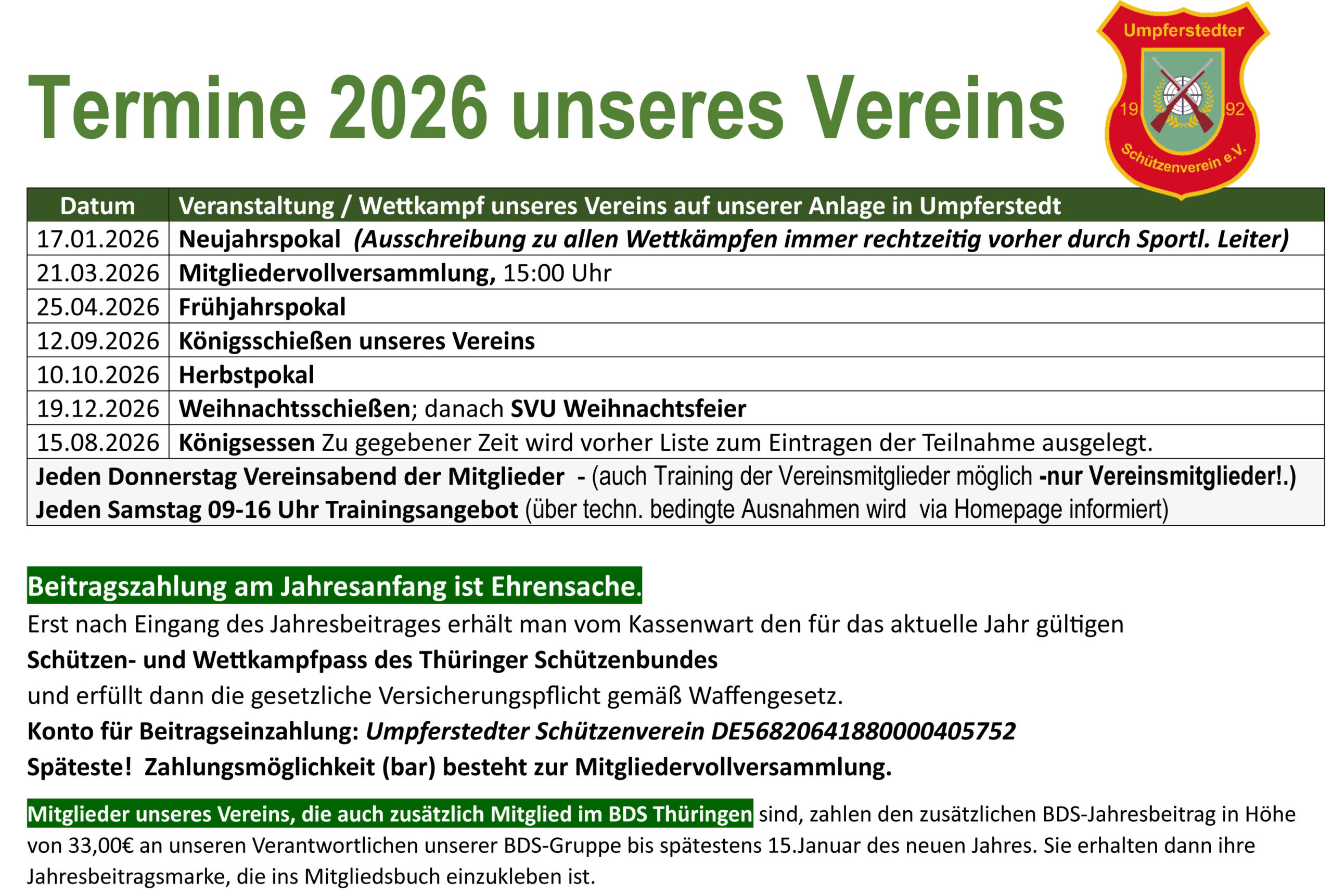 Aktuelles im Umpferstedter Schützenverein e. V: