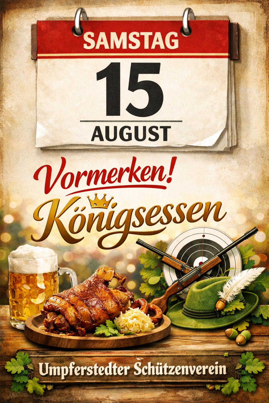 Zu gegebener Zeit wird dazu vorher im Schützenhaus eine Liste ausgelegt, in der sich die Teinehmer eintragen, damit König und Ritter das Essen …usw.